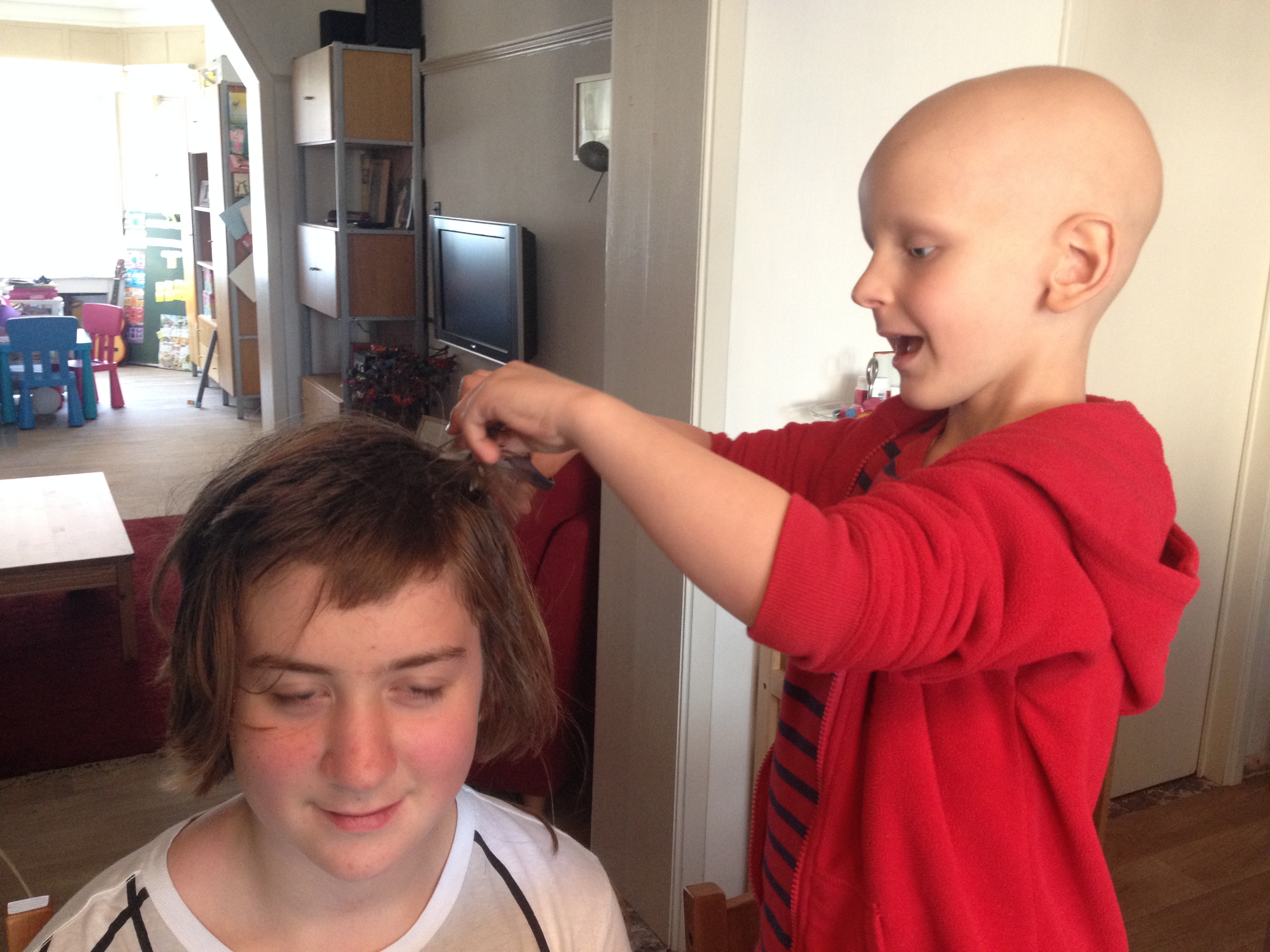 We wonen nu recht tegenover een kapperssalon, dus dat kan niet zo moeilijk zijn.