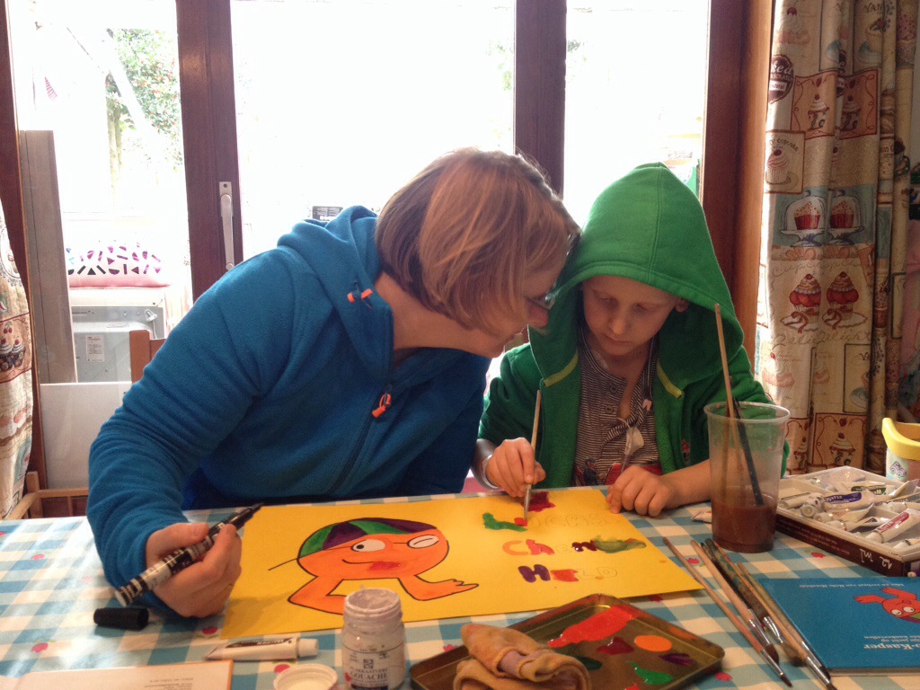 Als beloning schilderden we samen een chemo-diploma. Een dikke duim voor Lucas Chemoheld!