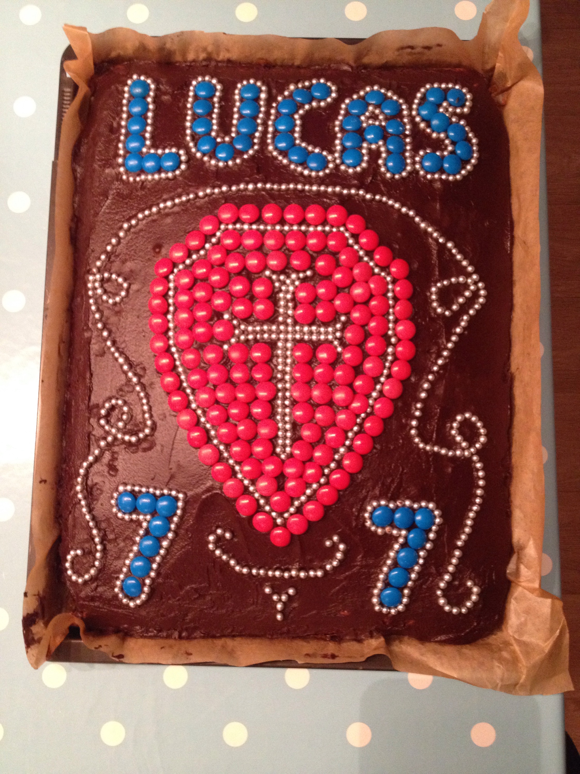 Ik gooi me dan ook vol enthousiasme op een wel heel therapeutisch project: een hospitaalriddertaart voor Lucas’ zevende verjaardag morgen. Daar zijn we, met z’n allen, wel enkele uren mee zoet.