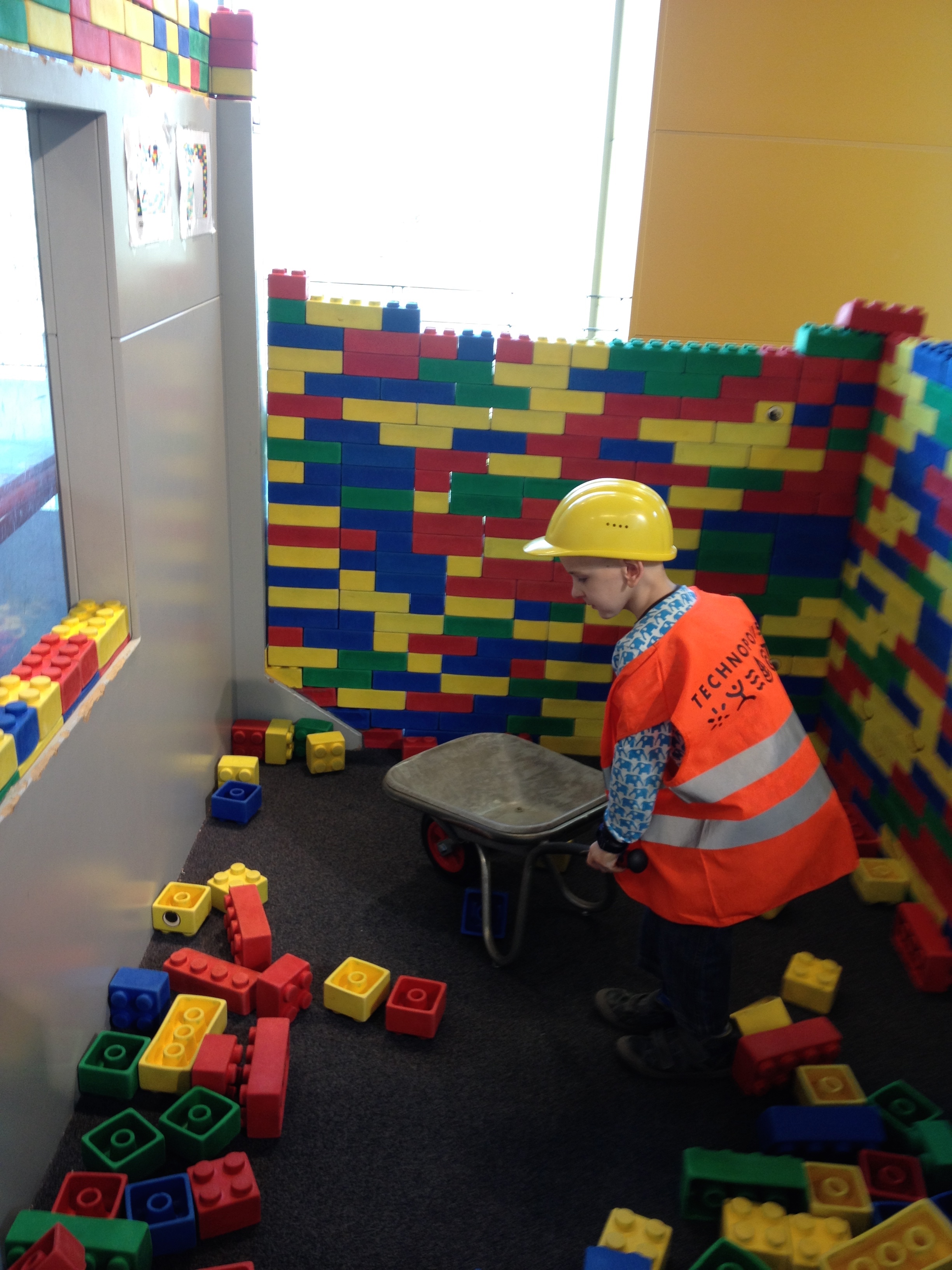 Het werd een èchte topdag!!! Lucas liep door het dolle heen, van het ene experiment naar het andere. Op geen enkele moment werd hij hangerig van vermoeidheid, en zelfs het middagmaal kon vrij normaal genoemd worden: broodje met kaas, frieten en curryworst. We verwachtten dat hij het maar enkele uren zou uithouden, maar geraakten pas tegen 15u ‘uitgespeeld’.