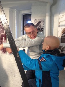Stipt om 17u15 kwamen papa en Lucas aan bij de ingang van de Universiteitsbibliotheek. Mama’s grote baas Hilde stond reeds klaar, en gelukkig maar, want Lucas was super-zenuwachtig. Eindelijk de grote dag van de beklimming van de bibliotheektoren. Vol goede moed begonnen we aan de klim van 289 trappen. Onderweg sloot Luc Rombouts, universiteits-beiaardier van Leuven, zich bij ons aan. Lucas luisterde geboeid naar de deskundige uitleg van Hilde bij elke verdieping in de toren. De dramatische branden van de Universiteitsbibliotheek tijdens de twee wereldoorlogen blijven hem intrigeren.