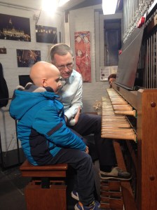 In de beiaardkamer zag Lucas een foto hangen van Inge, zijn muziektherapeute op Gasthuisberg. Eronder stond een doos waarin torenbezoekers een vrije bijdrage kunnen deponeren voor het muziektherapeutisch project van het Kinderkankerfonds van het UZ Leuven. Lucas vond het prachtig!
