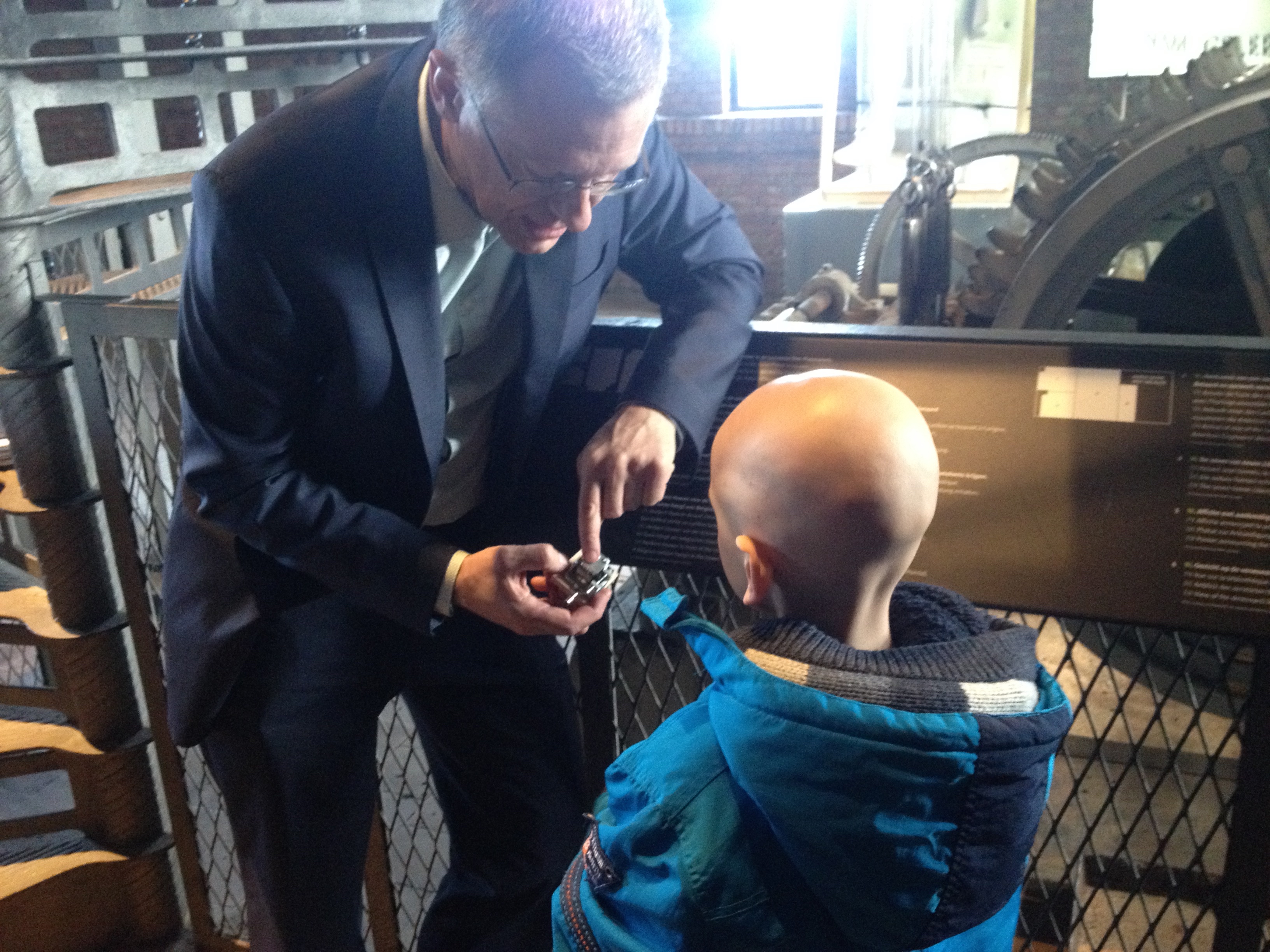 In de beiaardkamer zag Lucas een foto hangen van Inge, zijn muziektherapeute op Gasthuisberg. Eronder stond een doos waarin torenbezoekers een vrije bijdrage kunnen deponeren voor het muziektherapeutisch project van het Kinderkankerfonds van het UZ Leuven. Lucas vond het prachtig!