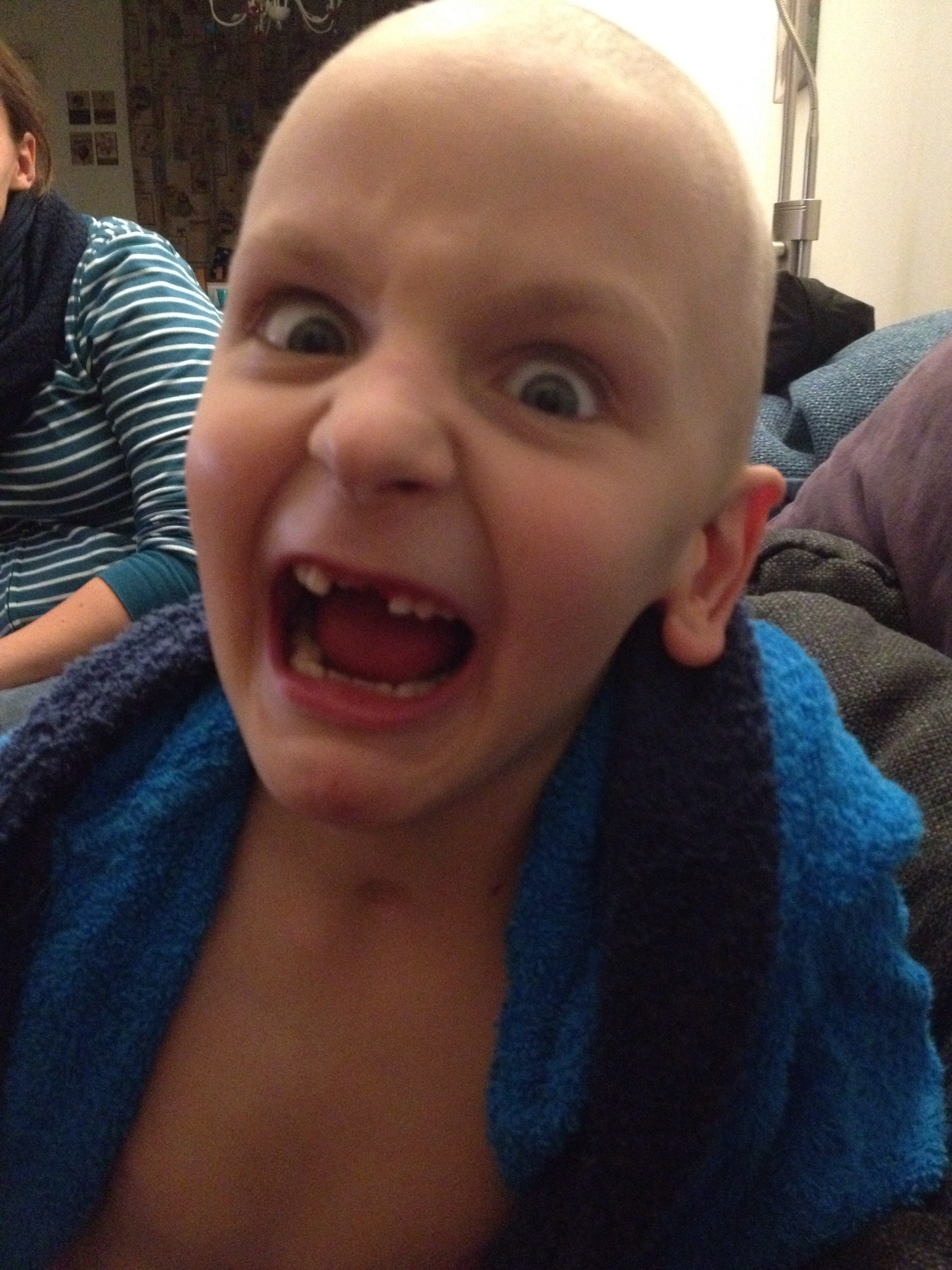 Bonk bonk stommel stommel. Lucas vliegt de woonkamer binnen, handen en gezicht onder het bloed, maar met een brede glimlach. “Ik heb weer een losse tand!” De eerste boventand ging er een dikke week geleden al uit. Een beetje wrikken en trekken en húp, daar gaat de tand! Zo’n tandenloze grijns is werkelijk geen gezicht, maar Lucas vindt het heerlijk ons de stuipen op het lijf te jagen met zijn Draculamond.