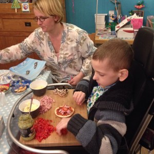 Na een stevige middagdut en een lange medische interventie – opnieuw aanprikken in de portacath, nieuwe leidingen naar zijn drie medicatiepompen en het wisselen van een van de cassettes in de pompen – had Lucas nog nét genoeg energie om wat Lego te bouwen en een kleine pizza te beleggen.