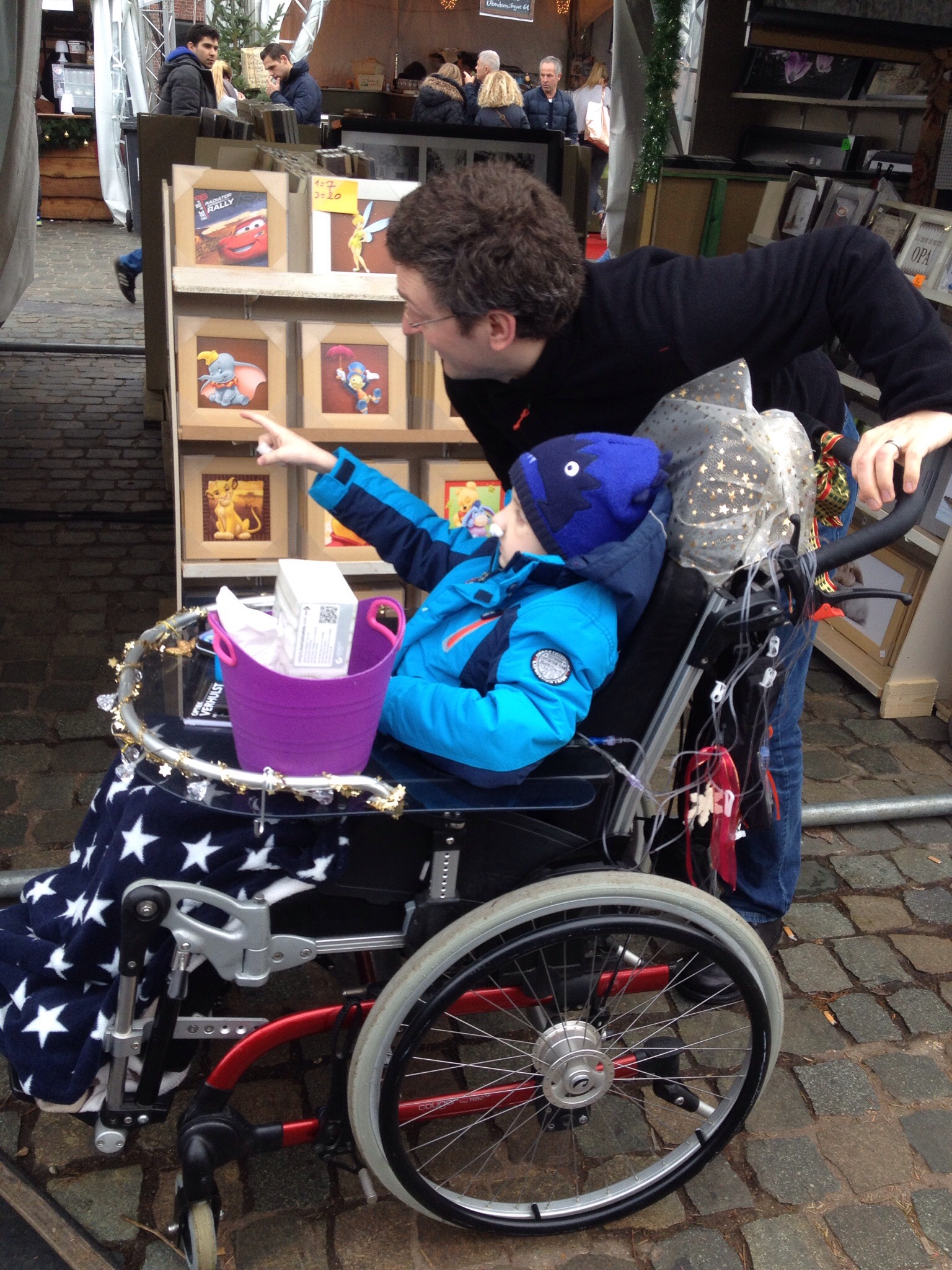 Afgelopen nacht was een topnacht; ononderbroken en redelijk lang, al waren er ook nog enkele onrustige momenten. Het is waarschijnlijk al heel lang geleden dat Lucas een zo lange en diepe nachtrust heeft gehad. En dat vertaalde zich vandaag in een onstuitbare wilskracht zoveel mogelijk te doen; een uitstap naar de kerstmarkt, ellenlange tekensessies en een uitstap naar de speelgoedwinkel in de buurt. Tijdens het tekenen was er wel af en toe een ‘knikkebollend’ dipje, maar het verzet tegen een rustpauze op bed was zo overtuigd dat aandringen meestal zinloos was. Een kort rustmoment van 10 minuten in de namiddag was het maximaal haalbare.