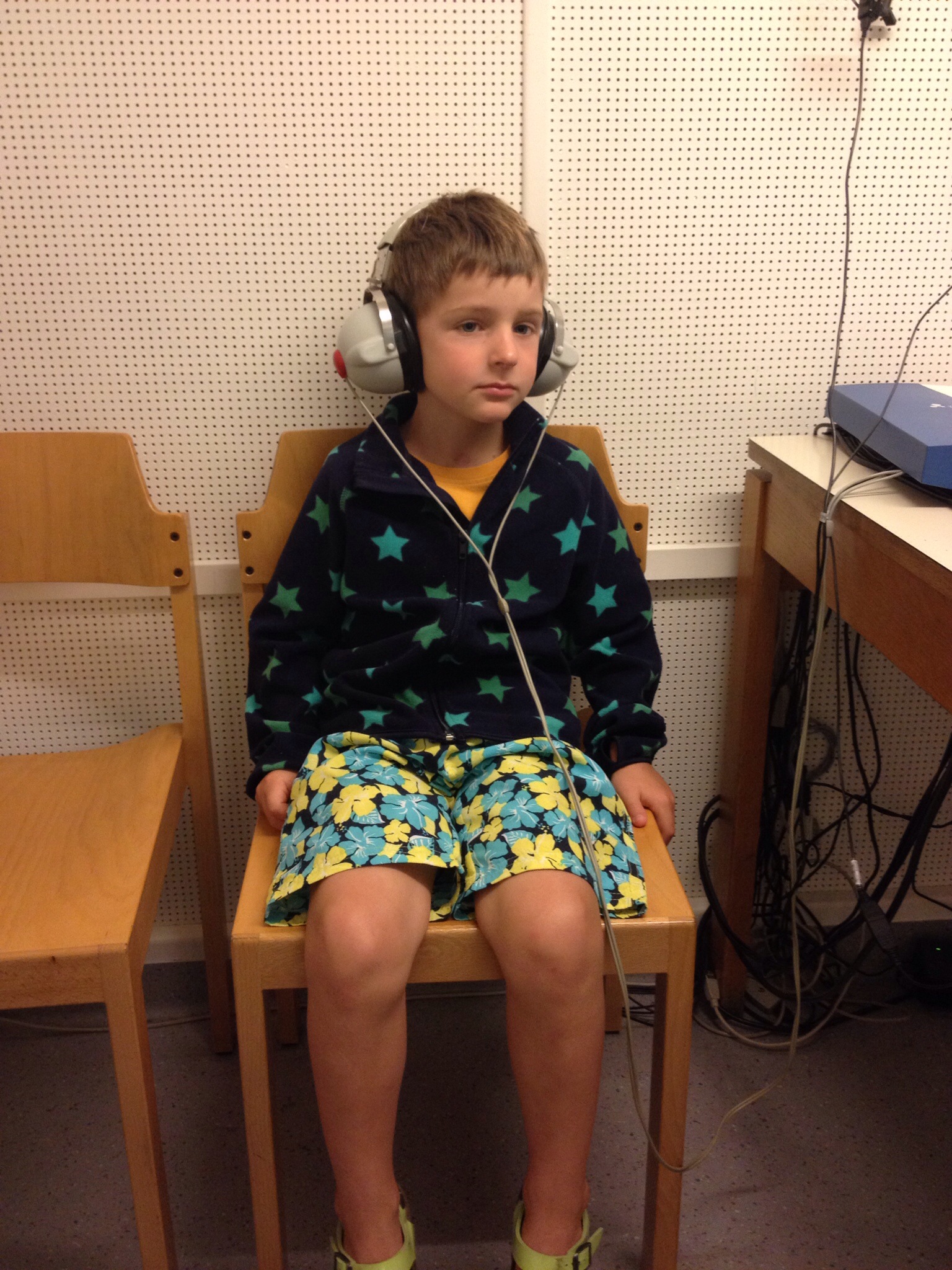De gehoortest duurde minder lang dan de vorige keer in februari maar de resultaten waren wel helemaal anders. Toen schatte men het gehoorverlies links in op ongeveer 50%. Nu hoort Lucas als bij wonder terug normaal langs de twee kanten. We hadden niet durven hopen dat zijn bestraalde oor zich volledig zou herstellen.