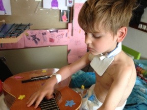 Vandaag begin van chemokuur 2. Maar deze keer zijn we beter gewapend: goed uitgeslapen en goed gegeten de afgelopen dagen; drukpunt-armbandjes tegen de misselijkheid; medicatie tegen de misselijkheid preventief gegeven, enz… De strijd kan eindelijk wat eerlijker gestreden worden. En als extraatje bovenop de muziektherapie bracht de muziektherapeute haar synthesizer in bruikleen bij Lucas op de kamer. Met drums en ‘special effects’ een beetje ambiance hier op de afdeling; we spelen de kanker gewoon naar huis! Hopen dat hij de komende dagen even veel ‘in form’ mag blijven.